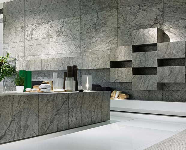 柔軟で曲げる事ができるストーンペーパーは、今まで天然石を使用できなかったようなところに使用できるようになりました。